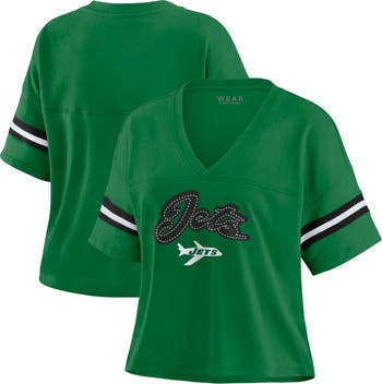Show your New York Jets pride in style with this WEAR by Erin Andrews Color Block Boxy V-Neck T-Shirt. This stylish tee features a trendy color block design and bold New York Jets graphics, ensuring you stand out from the crowd at any game day gathering. The luxuriously soft jersey fabric combined with a relaxed, boxy fit will keep you feeling as comfortable as you look all day long.