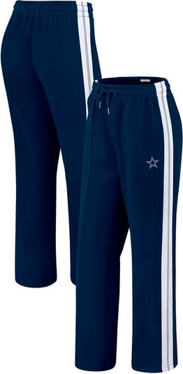 WEAR by Erin Andrews designed these Color-Block Straight Leg Pants for a comfy and stylish Dallas Cowboys look. Heavy tricot fabric drapes beautifully for comfortable movement, while the drawstring-adjustable waistband allows for a customized fit. Side stripes accentuating the embroidered Dallas Cowboys logo add a sporty finish to these fashion-forward pants.
