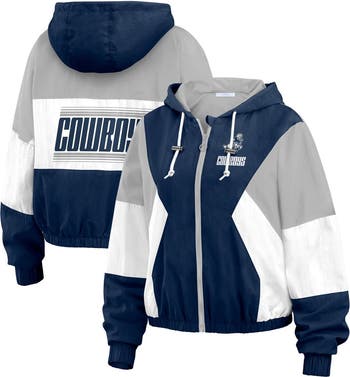 Women's WEAR by Erin Andrews Navy Dallas Cowboys Plus Size Color Block Full-Zip Windbreaker Jacket