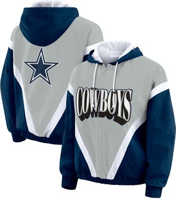 Women's WEAR by Erin Andrews Navy/Gray Dallas Cowboys Plus Size Retro Crinkle Full-Zip Windbreaker Jacket