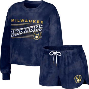 Women's WEAR by Erin Andrews Navy Milwaukee Brewers Tie-Dye Cropped Pullover Sweatshirt & Shorts Lounge Set