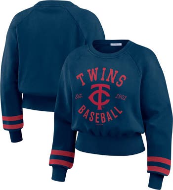 Women's WEAR by Erin Andrews Navy Minnesota Twins Vintage Washed Cropped Pullover Sweatshirt