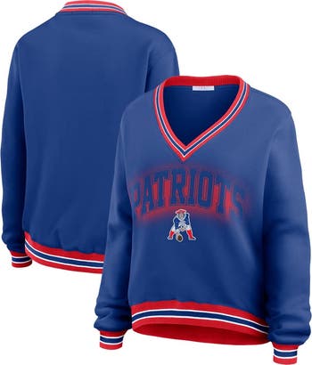 Stay cozy and show off your New England Patriots pride in this Oversized Long Sleeve V-Neck Sweatshirt from WEAR by Erin Andrews. This oversized sweatshirt features dropped shoulder seams for a relaxed fit that's perfect for game day or any casual occasion. The sublimated rib-knit collar, cuffs, and waistband provide a touch of style and durability, while the screen print graphic with tackle twill applique on the front proudly displays your Patriots pride.