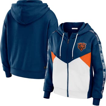 Women's WEAR by Erin Andrews Navy/White Chicago Bears Color Block Light Weight Modest Crop Full-Zip Hoodie