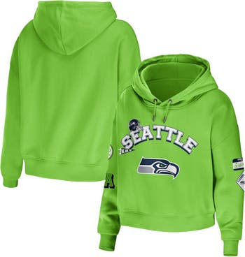 Women's WEAR by Erin Andrews Neon Green Seattle Seahawks Modest Cropped Pullover Hoodie