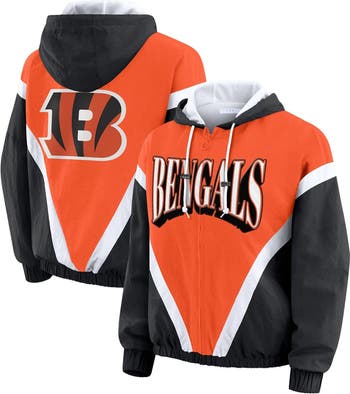 Women's WEAR by Erin Andrews Orange/Black Cincinnati Bengals Retro Crinkle Full-Zip Hoodie Windbreaker