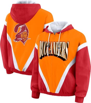 Women's WEAR by Erin Andrews Orange/Red Tampa Bay Buccaneers Retro Crinkle Full-Zip Hoodie Windbreaker