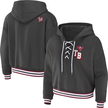 Women's WEAR by Erin Andrews Pewter Tampa Bay Buccaneers Lace-Up Pullover Hoodie
