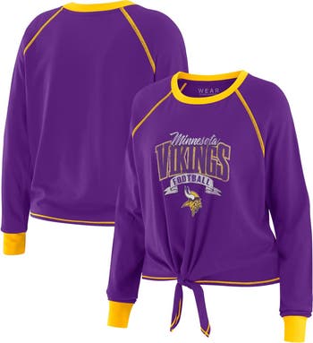 Hit the stadium in style with this Minnesota Vikings Tie-Front Long Sleeve Top. This top from WEAR by Erin Andrews features a stylish tie front design, adding a touch of flair to your game day look. The soft and comfortable fabric ensures all-day wearability, making it a versatile addition to any Minnesota Vikings fan's wardrobe.