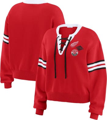 Women's WEAR by Erin Andrews Red Detroit Red Wings Cropped Lace-Up Sweater