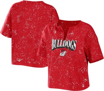 The Women's WEAR by Erin Andrews Red Georgia Bulldogs Bleach Wash Splatter Cropped Notch Neck T-Shirt is a stylish way to show unwavering support for the Georgia Bulldogs. The unique bleach-wash design adds individuality, while the cropped fit and splatter bleach design create a modern, eye-catching look. Whether cheering from the stands or showing Georgia Bulldogs pride, this T-shirt is the perfect way to represent your favorite team.