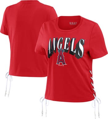 Women's WEAR by Erin Andrews Red Los Angeles Angels Side Lace-Up Cropped T-Shirt