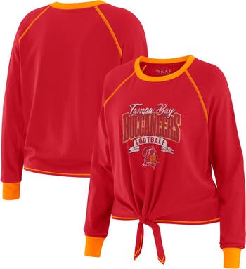 Hit the stadium in style with this Tampa Bay Buccaneers Plus Size Tie-Front Long Sleeve Top. This top from WEAR by Erin Andrews features a stylish tie front design, adding a touch of flair to your game day look. The soft and comfortable fabric ensures all-day wearability, making it a versatile addition to any Tampa Bay Buccaneers fan's wardrobe.