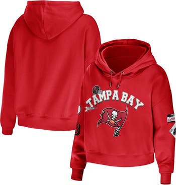 The Women's WEAR by Erin Andrews Red Tampa Bay Buccaneers Modest Cropped Pullover Hoodie is the perfect way to show your support for the Tampa Bay Buccaneers. This midweight hoodie is made of durable polyester and features a cropped hem, hood with drawstrings, and screen print graphics that proudly display your Buccaneers pride. Whether you're cheering from the stands or just relaxing at home, this hoodie will keep you comfortable and stylish.