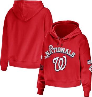 Women's WEAR by Erin Andrews Red Washington Nationals Modest Patches Cropped Pullover Hoodie