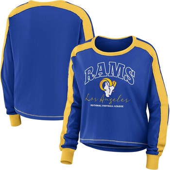Women's WEAR by Erin Andrews Royal/Gold Los Angeles Rams Color Block Modest Crop Long Sleeve T-Shirt