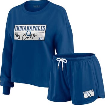Women's WEAR by Erin Andrews Royal Indianapolis Colts Heavy Rugby Jersey Long Sleeve T-Shirt & Shorts Lounge Set