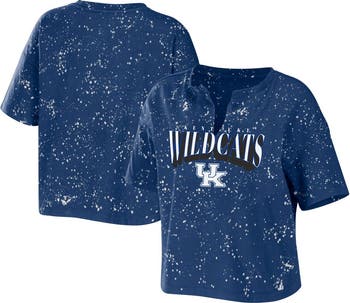 Celebrate your unwavering Kentucky Wildcats spirit with the WEAR by Erin Andrews Royal Kentucky Wildcats Bleach Wash Splatter Cropped Notch Neck T-Shirt. This unique tee features a bleach-wash design that varies on each shirt, making it a one-of-a-kind addition to your Wildcats wardrobe. The cropped fit and splatter bleach design add a touch of style to your game day attire, while the official Kentucky Wildcats logo proudly displays your allegiance. Whether you're cheering from the stands or simply showing your support, this T-shirt is the perfect way to represent the Kentucky Wildcats in style.