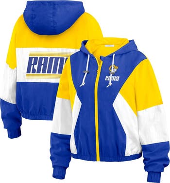 Women's WEAR by Erin Andrews Royal Los Angeles Rams Color Block Full-Zip Windbreaker Jacket
