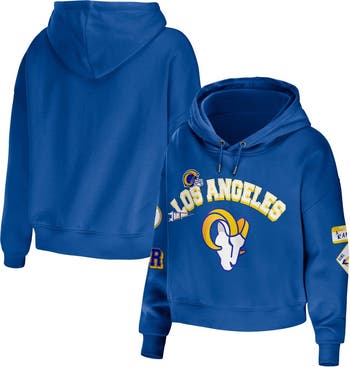 Women's WEAR by Erin Andrews Royal Los Angeles Rams Modest Cropped Pullover Hoodie