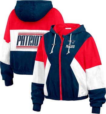 Celebrate your New England Patriots fandom in style with this WEAR by Erin Andrews Color Block Full-Zip Windbreaker Jacket. This lightweight jacket is perfect for mild temperatures and features striking New England Patriots graphics. The mesh lining, elastic banded sleeve cuffs and waist at hem provide a comfortable fit. Whether you're at the stadium or watching from home, this New England Patriots jacket will keep you comfortable and stylish all game long.