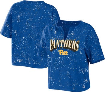 Women's WEAR by Erin Andrews Royal Pitt Panthers Bleach Wash Splatter Cropped Notch Neck T-Shirt