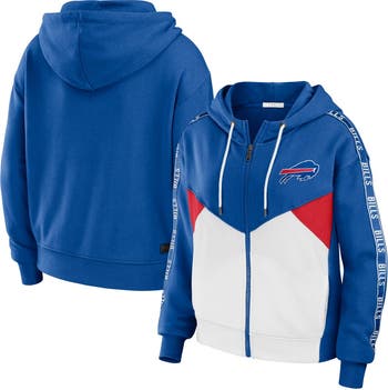 Women's WEAR by Erin Andrews Royal/White Buffalo Bills Color Block Light Weight Modest Crop Full-Zip Hoodie