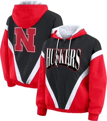 Women's WEAR by Erin Andrews Scarlet/Black Nebraska Huskers Colorblock Full-Zip Hoodie Windbreaker Jacket
