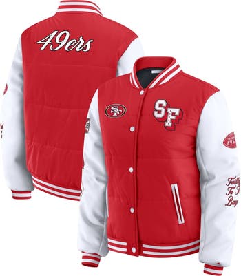 Women's WEAR by Erin Andrews Scarlet San Francisco 49ers Varsity Full-Snap Puffer Jacket