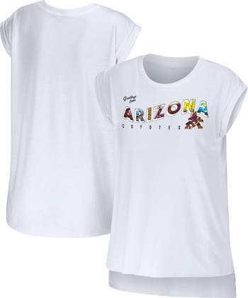 Women's WEAR by Erin Andrews White Arizona Coyotes Greetings From Muscle T-Shirt