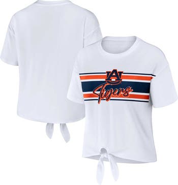 This Auburn Tigers T-shirt from WEAR by Erin Andrews offers a fresh look for game day. It features charming Auburn Tigers graphics complemented by coordinating stripes and a front tie knot. A cropped hem adds even more appeal.