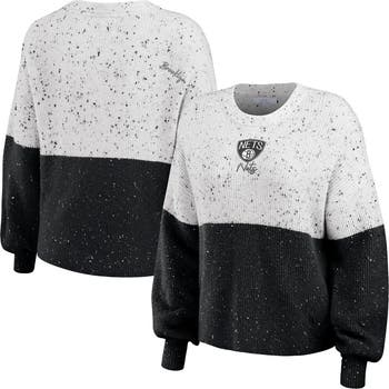 Women's WEAR by Erin Andrews White/Black Brooklyn Nets Color-Block Pullover Sweater