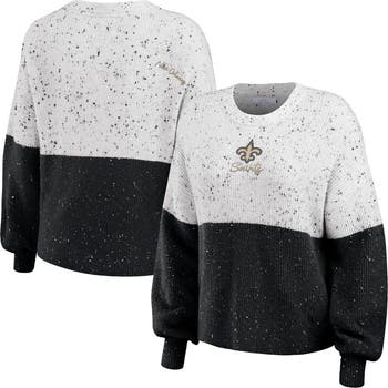 Women's WEAR by Erin Andrews White/Black New Orleans Saints Lighweight Modest Crop Color-Block Pullover Sweater