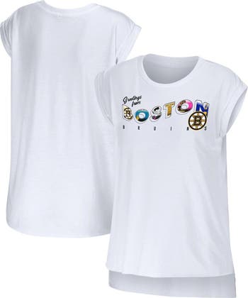 Women's WEAR by Erin Andrews White Boston Bruins Greetings From Muscle T-Shirt