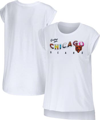 Women's WEAR by Erin Andrews White Chicago Bears Greetings From Muscle T-Shirt