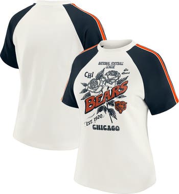 Showcase your Chicago Bears pride with this Sleeve Stripe Distressed Raglan T-Shirt from WEAR by Erin Andrews. The distressed screen print graphics give it a vintage look that adds a touch of timeless style. The contrast-color sleeve stripes and raglan sleeves make this t-shirt a unique addition to your Chicago Bears collection.