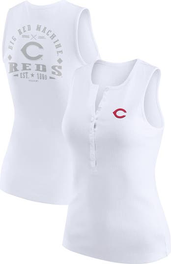 Women's WEAR by Erin Andrews White Cincinnati Reds Rib-Knit Henley Tank Top