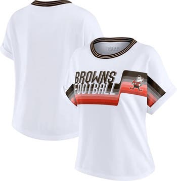 Show your unwavering team pride with this Cleveland Browns Cropped Center Stripe Dolman T-Shirt from WEAR by Erin Andrews. The boxy fit offers a relaxed feel across the chest, shoulders and body. This tee is finished with a team wordmark and logo across the chest so you can rep the Cleveland Browns in style.