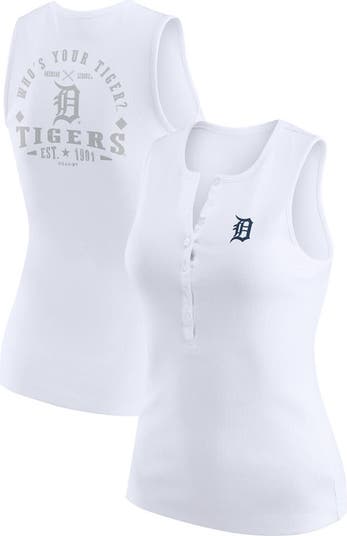 Women's WEAR by Erin Andrews White Detroit Tigers Rib-Knit Henley Tank Top