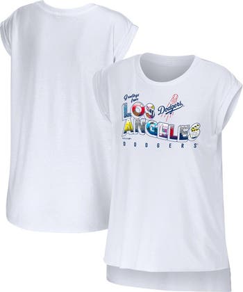 Women's WEAR by Erin Andrews White Los Angeles Dodgers Greetings From T-Shirt