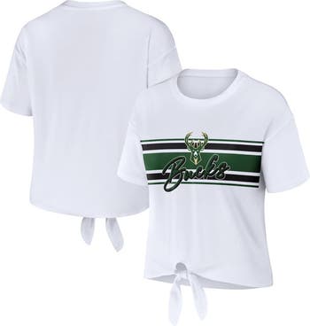 Women's WEAR by Erin Andrews White Milwaukee Bucks Tie-Front T-Shirt