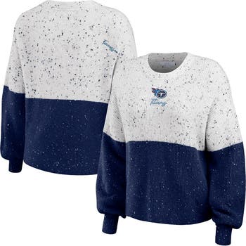 Women's WEAR by Erin Andrews White/Navy Tennessee Titans Lighweight Modest Crop Color-Block Pullover Sweater