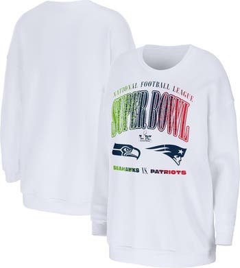 Women's WEAR by Erin Andrews White New England Patriots vs. Seattle Seahawks Super Bowl LX Matchup Sweatshirt