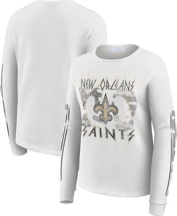 Women's WEAR by Erin Andrews White New Orleans Saints Graphic Waffle Long-Sleeve T-Shirt