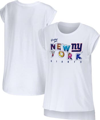 Women's WEAR by Erin Andrews White New York Giants Greetings From Muscle T-Shirt
