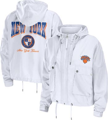 Women's WEAR by Erin Andrews White New York Knicks Cropped Full-Zip Windbreaker Jacket