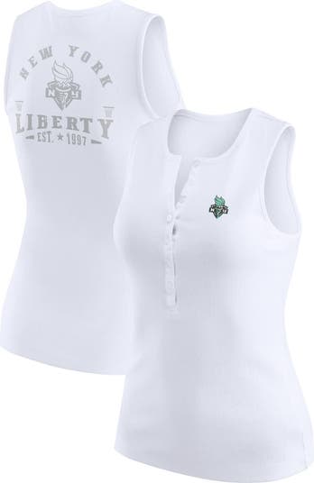 Show off your New York Liberty pride with this Rib-Knit Henley Tank Top from WEAR by Erin Andrews. With its rib-knit fabric, this tank provides a comfortable and flattering fit, perfect for layering or wearing on its own. The screen-printed team graphics on the left chest and back proudly display your New York Liberty fandom, making this tank top a stylish choice for game day or any casual occasion.