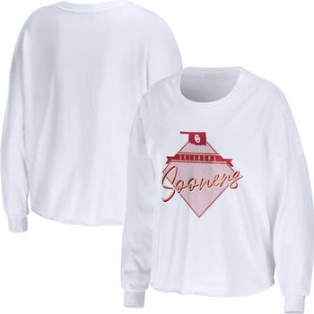 Women's WEAR by Erin Andrews White Oklahoma Sooners Diamond Long Sleeve Cropped T-Shirt