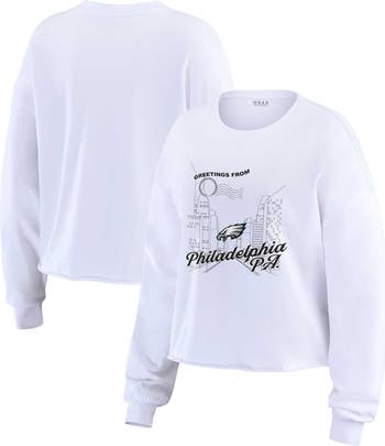Women's WEAR by Erin Andrews White Philadelphia Eagles Postcard Cropped Long Sleeve Top