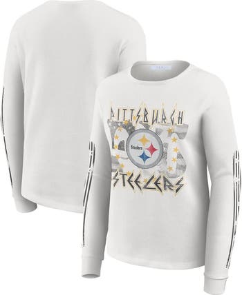 Women's WEAR by Erin Andrews White Pittsburgh Steelers Graphic Waffle Long-Sleeve T-Shirt